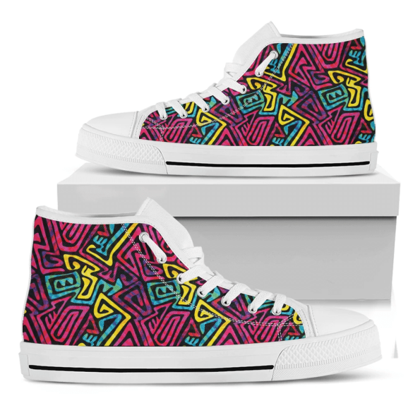 Psychedelic Funky Pattern Print White High Top Shoes For Men And Women